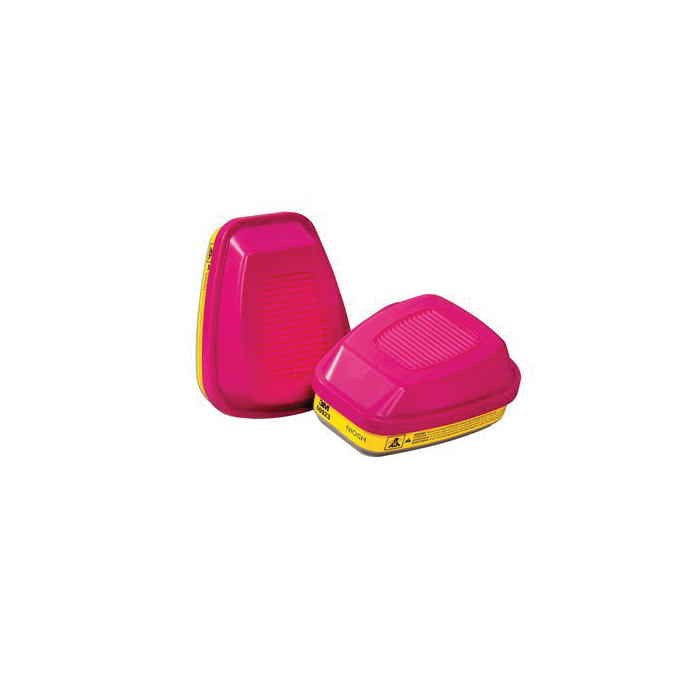 This organic vapor/acid gas cartridge/filter works with 3M™ Half and Full Facepieces 6000, 7000 and FF-400 Series with bayonet attachment holders. The cartridge is NIOSH (National Institute for Occupational Safety and Health) approved for environments containing acid gases and non-oil and oil particulates. The cartridge has been assigned the color code “Magenta/Yellow” in the NIOSH system.