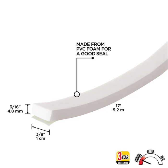Closed Cell Vinyl Foam Tape, 3/16 in THK, 17 ft L, 3/8 in W