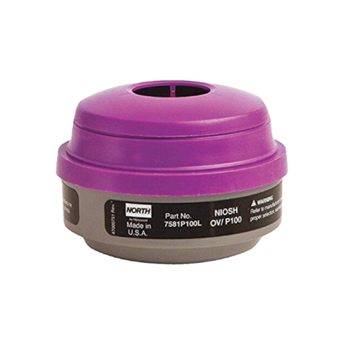 Organic Vapor Cartridge with a P100 Particulate Filter (99.97% minimum filter efficiency) for all particulates.